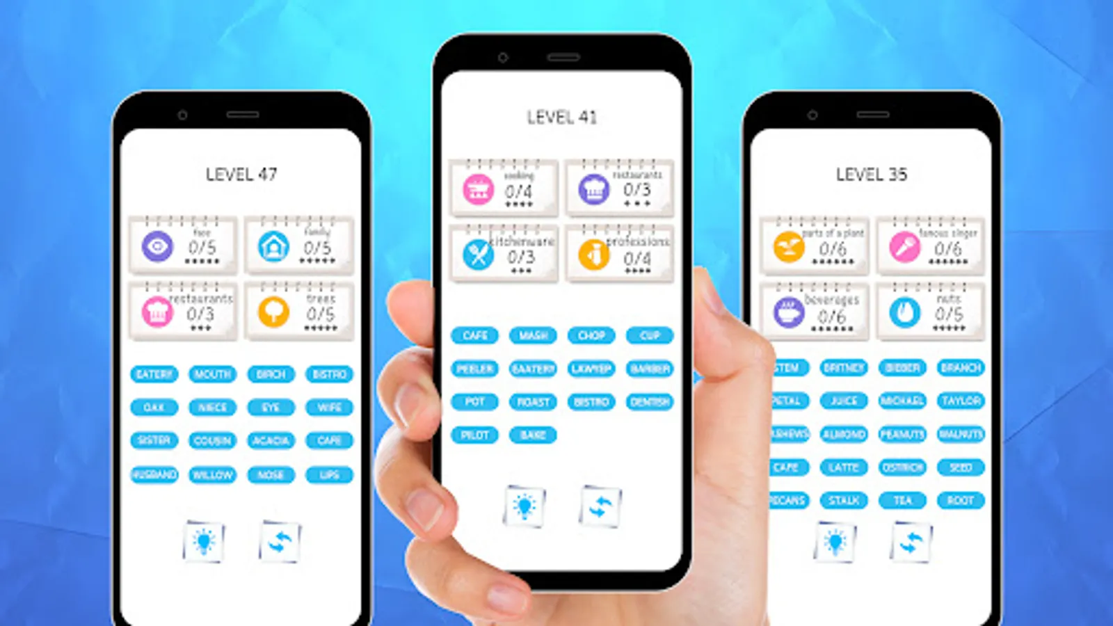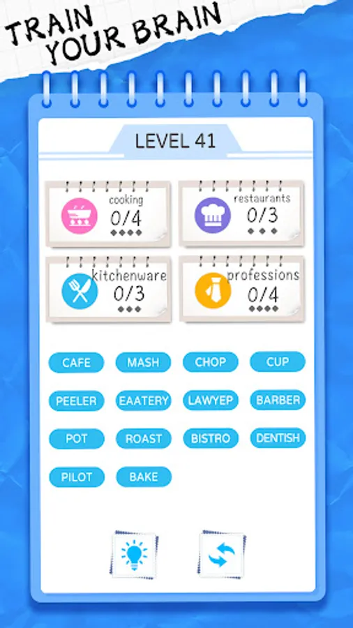 2. Progress through Levels: Each level will have multiple categories. As you progress, the types and difficulties of the words gradually increase.