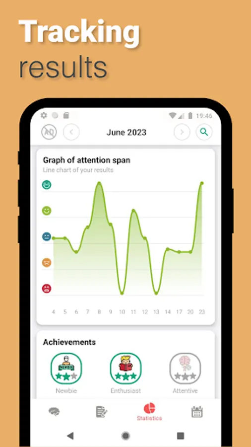 Detailed improvement tracking: graphs, rankings, calendar, and tasks on the statistics tab.