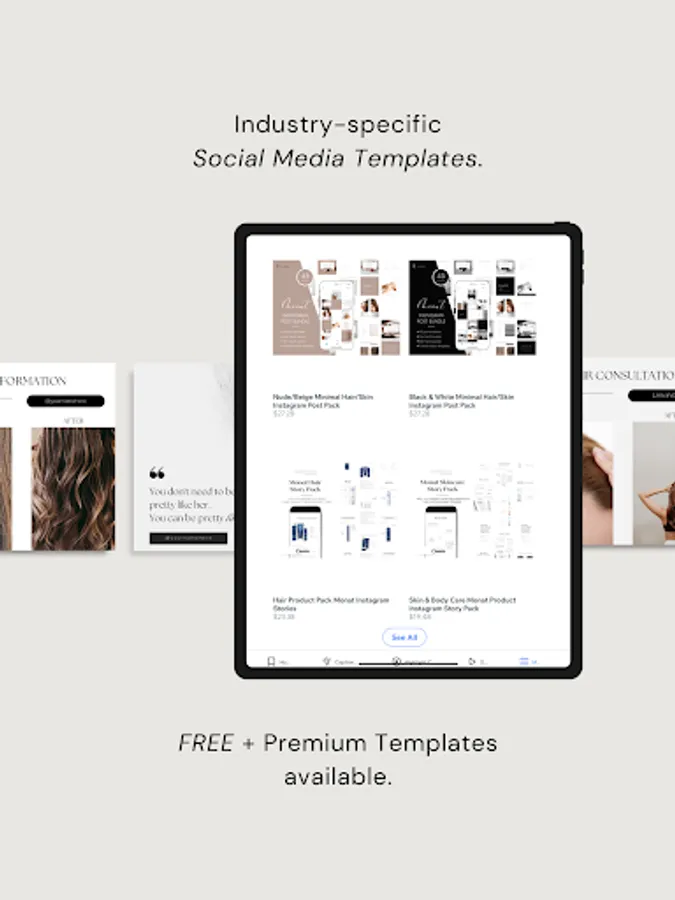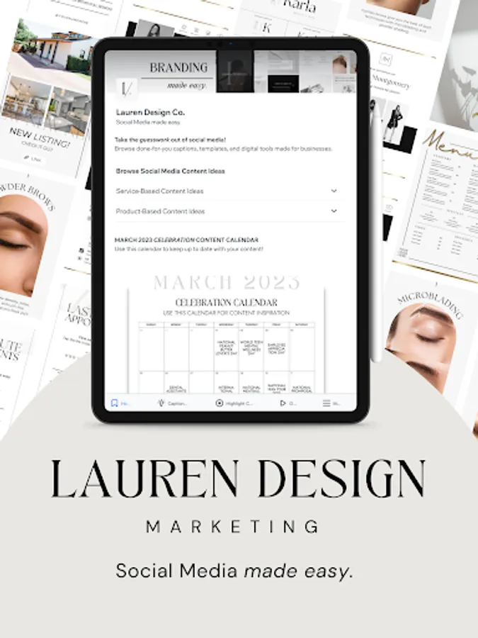 Socials made easy. Branded content for your business socials with captions & templates that help to convert. Build your audience and drive up your interaction on social media while saving time with our free caption banks and niche-specific templates with informative verbiage included.