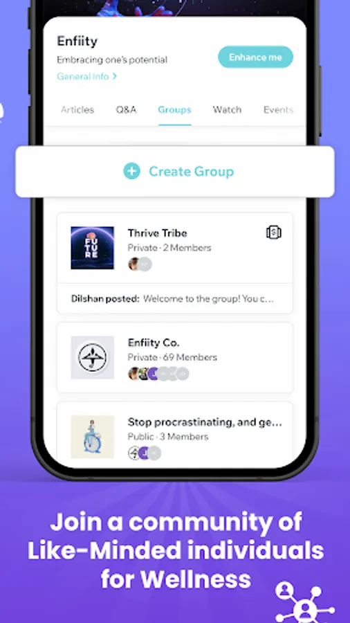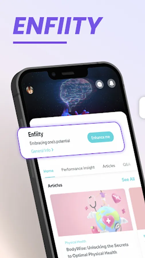Achieve optimal mental and physical health with Enfiity - the #1 synthetic health app that connects you with expert psychologists, personal trainers, nutritionists, and AI technology. Get personalised guidance, engage in live discussions, and join a supportive community today!