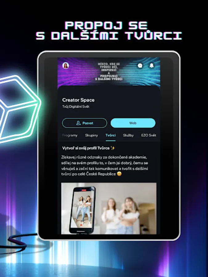 A proto vznikl CreatorSpace. Místo, které spojuje fyzické s nefyzickým. Most mezi digitálním a spirituálním světem. Prostor, který v tobě probudí tvého originálního tvůrce, tvoji opravdovou vnitřní sílu.