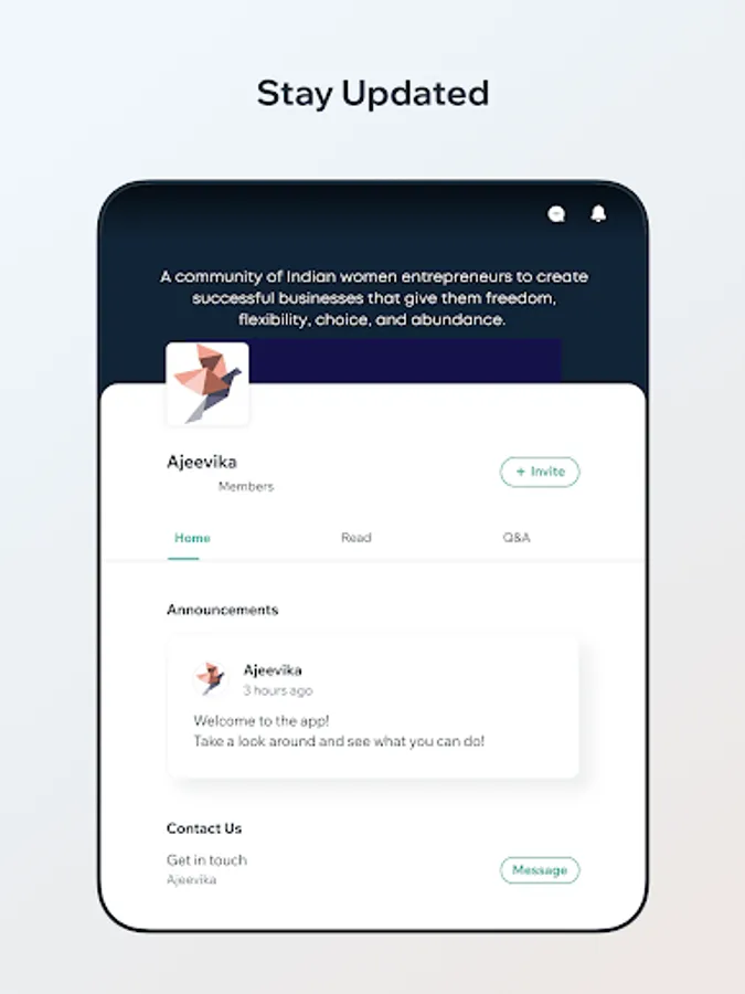 Professional Network: A network where women entrepreneurs can ask & answer questions, seek advice, and share knowledge to learn & grow together.