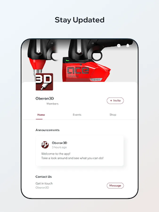 Pierwsza odsłona bezpłatnej aplikacji Oberon 3D. Dzięki niej masz możliwość bezpośredniego kontaktu z naszą firmą i jej pracownikami, możesz śledzić na bieżąco zmiany w naszej ofercie, dokonać zakupu w naszym nowym sklepie internetowym, wyświetlić informację o wszystkich nadchodzących wydarzeniach i szkoleniach, zgłosić do nich swój udział, wybrać plany cenowe z portfolio naszych usług dotyczących kalibracji maszyn, szkoleń metrologicznych oraz z obsługi oprogramowania.