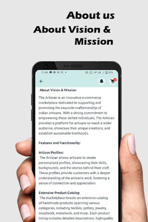 The Artisian is an innovative e-commerce marketplace dedicated to supporting and promoting the exquisite craftsmanship of Indian artisans. With a strong commitment to empowering these skilled individuals, The Artisian provides a platform for artisans to reach a wider audience, showcase their unique creations, and establish sustainable livelihoods.
