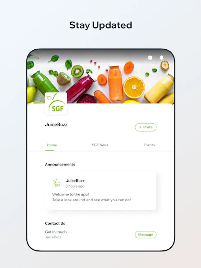 JuiceBuzz is the new platform for all members to receive latest scientific industry news and information about events. A live chat enables you to discuss real time with SGF scientists. Comment or like posts and receive immediate feedback to your questions. Stay up to date with SGF.