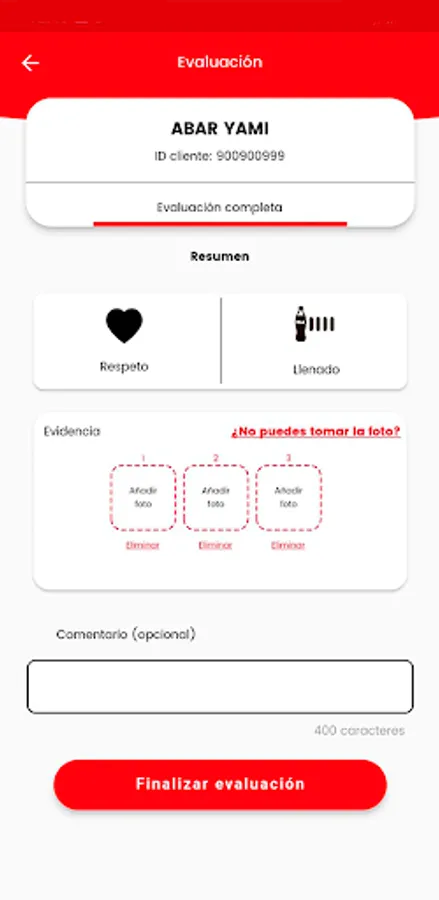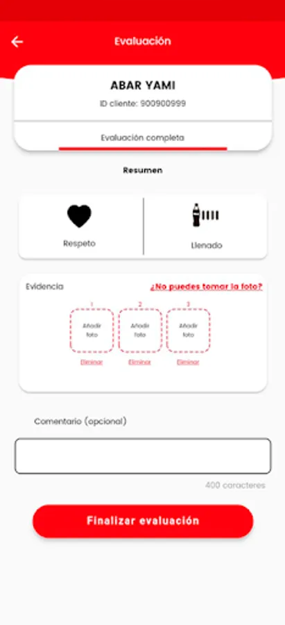 Esta aplicación permitirá a los FDV evaluar el desempeño de nuestros clientes.