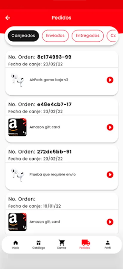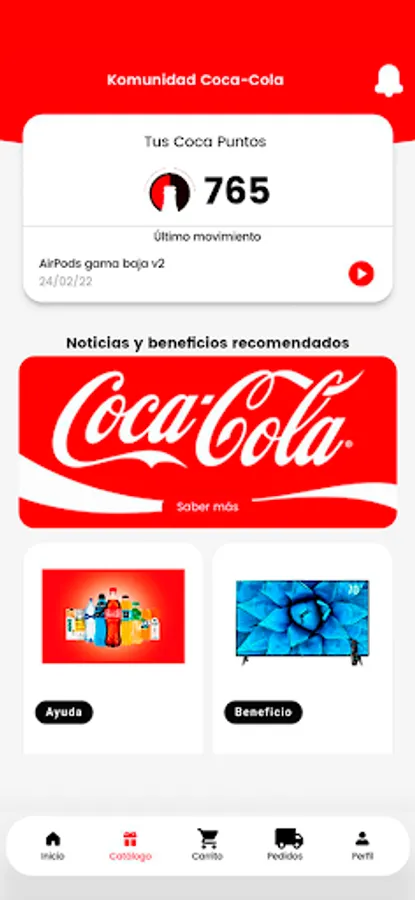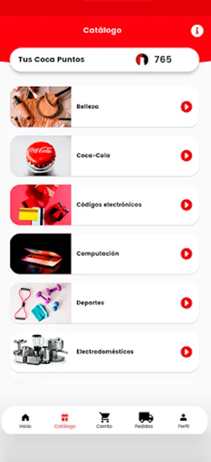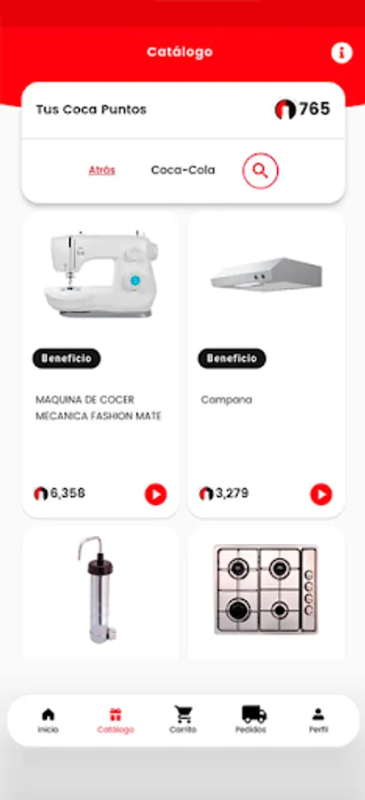 de movimientos, catálogo de premios, consultar tus datos, la opción de realizar tu canje y