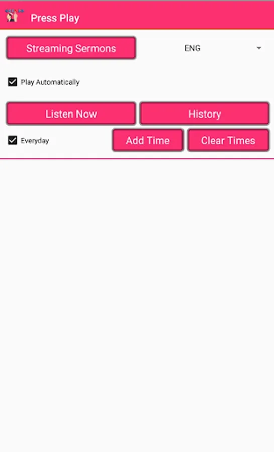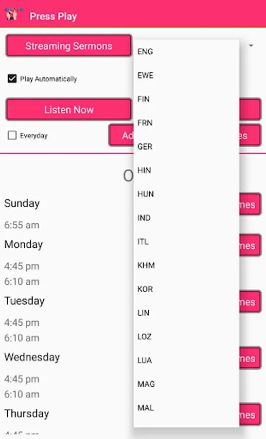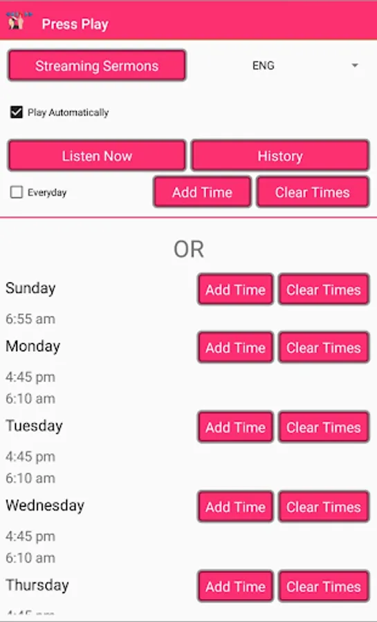 The App was created for those who love The Tape ministry and for those seeking to be constantly in and on the pure word of God. All you do is select your day(s) and specify what time of each day you want to listen a message. You can choose to stream or select a folder on your device which holds only the message files in ".m4a". You can also select to play the sermon automatically. The app will then randomly select a message for you to tune in to without any additional input.