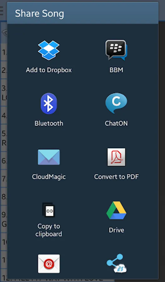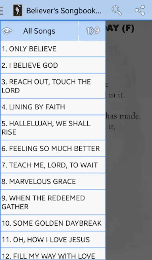 N.B. Touching the top left or swiping inwards from the left edge will open the song list which you can scroll through.