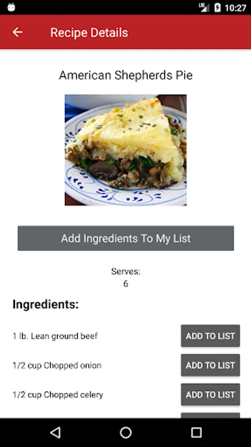 - Check out our recipe database on the go and add ingredients directly to your shopping list with the push of a button! Features handy multi-filter search functionality to find just the dish you're craving.