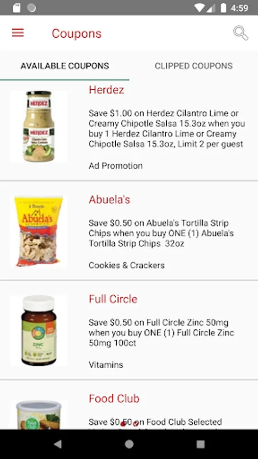 Coupons: Easily view our available Coupons via our mobile formatted browsing! Clip coupons straight to your account and redeem at the register.