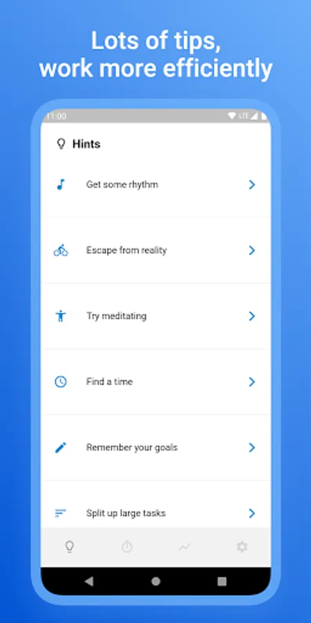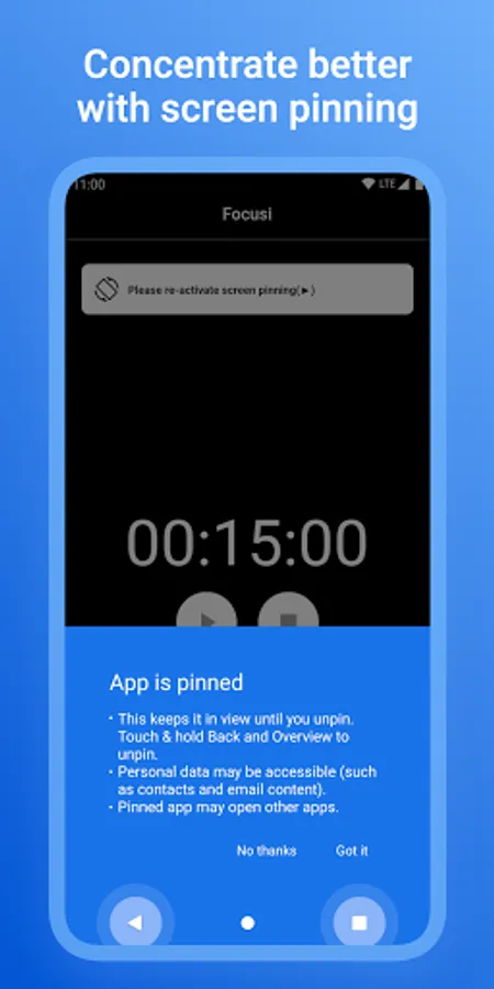 - Hard mode(a mode that pins the timer screen and stops other notifications from bothering you)