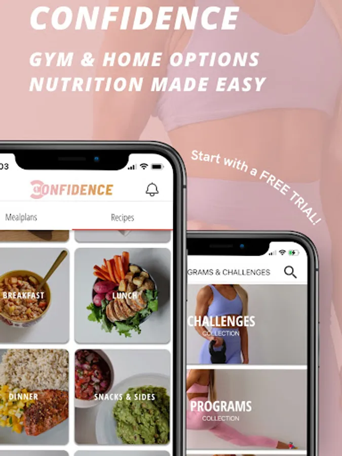 Start with a endless selection of daily workouts or pick from one of our many Programs & Challenges to help you progress in your fitness journey. The Confidence programs will guide you through a structured workout routine everyday to develop a strong physique.