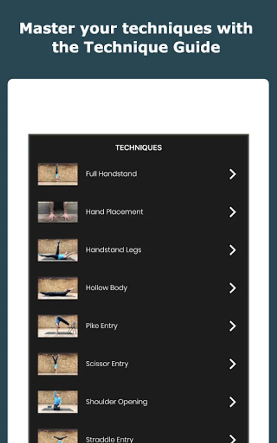 This Handstand App will make you rethink your strength and balance! You'll learn how to break down the different components of Handstand into a consumable format, making the learning process easy to follow with short and sweet videos covering tons of different Handstand skills & drills!