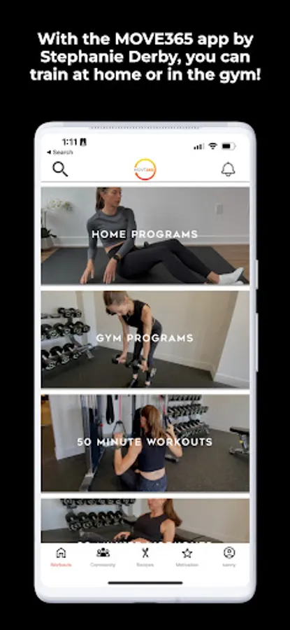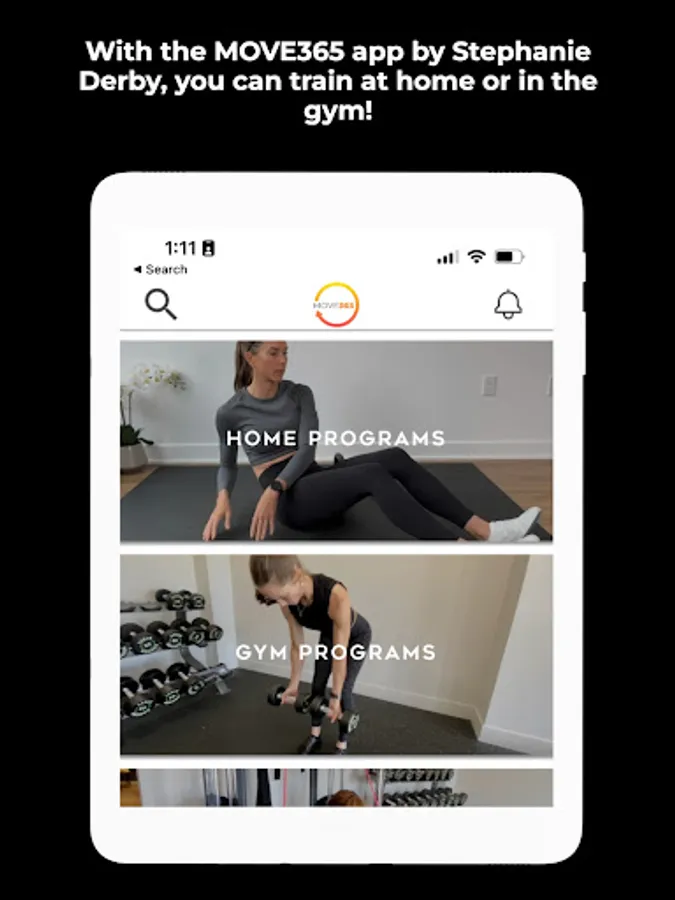 With the MOVE365 app by Stephanie Derby, you can train at home or in the gym. The app provides access to guided workouts for all fitness levels ranging from 5 minutes to 50 + minutes. Most workouts utilize minimal equipment, so you can move anytime, anywhere.