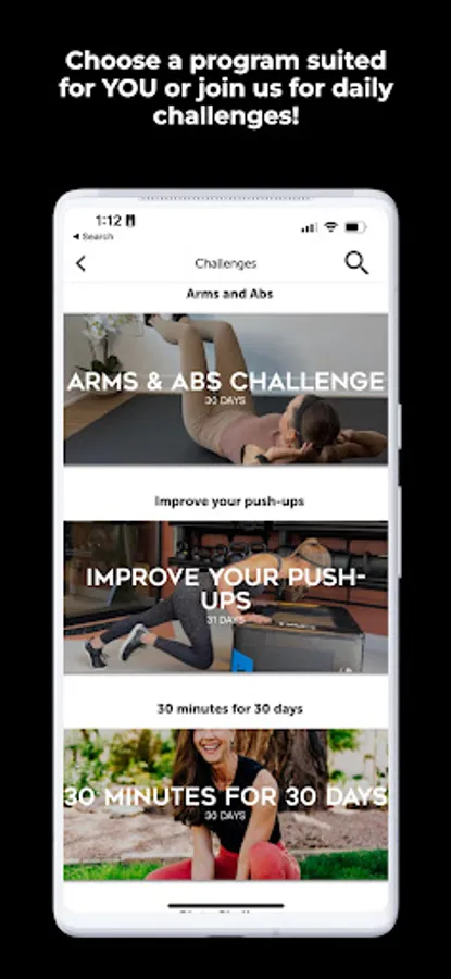 You can choose a program suited for your fitness level, select a workout based on the time you have available or join us for daily challenges!