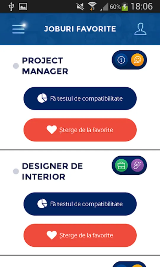 Cu aplicatia Tomorrow ME iti poti salva joburile preferate in contul tau si ai istoricul tuturor testelor efectuate.