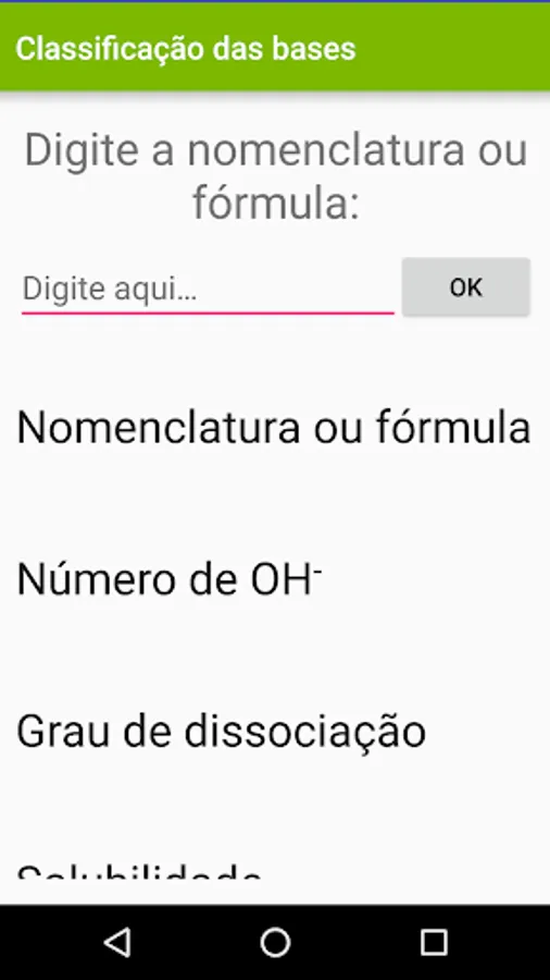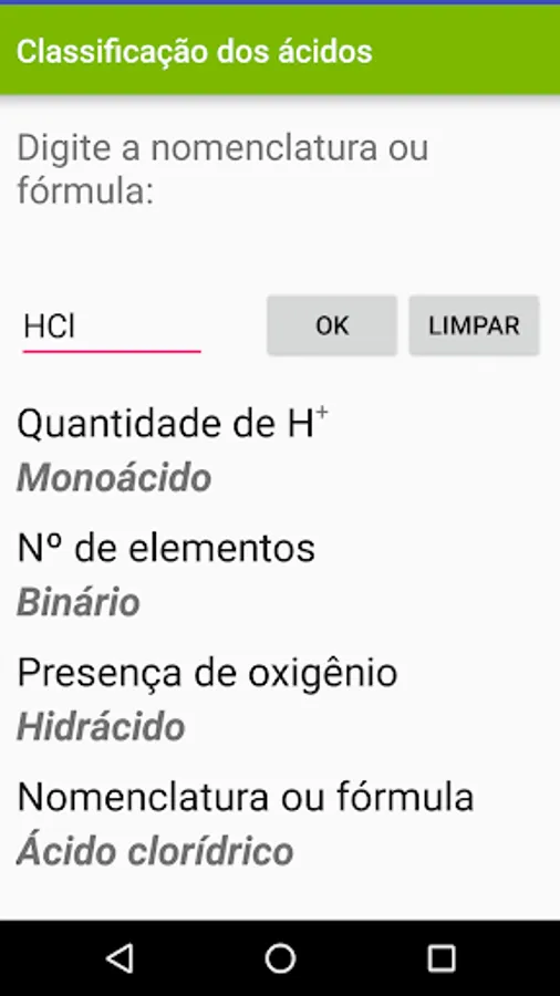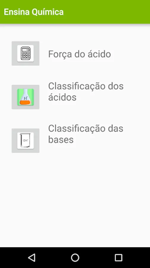 The application teaches Chemistry was created in order to facilitate access to information about functions inorganic acid / base.
