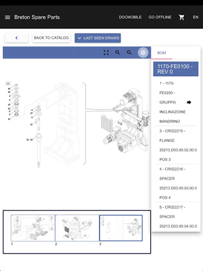 Breton spareparts e-commerce. Explore machineries catalog, visualize plants or parts and navigate them through draws, manage your orders.