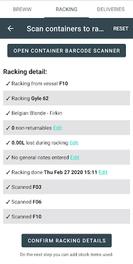 There's also a more streamlined racking process with built in barcode scanner to make racking containers such as casks and kegs easier and faster than ever before.