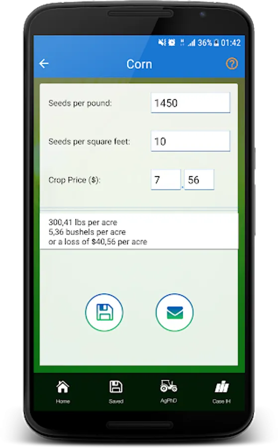 The Ag PhD Harvest Loss Calculator helps you determine how much of your crop you are leaving in the field after harvest. Simply select your crop and input the number of seeds/kernels you count on the ground in a square foot. The app returns a harvest loss calculation in both bushels per acre and pounds per acre.