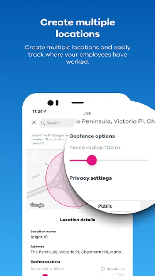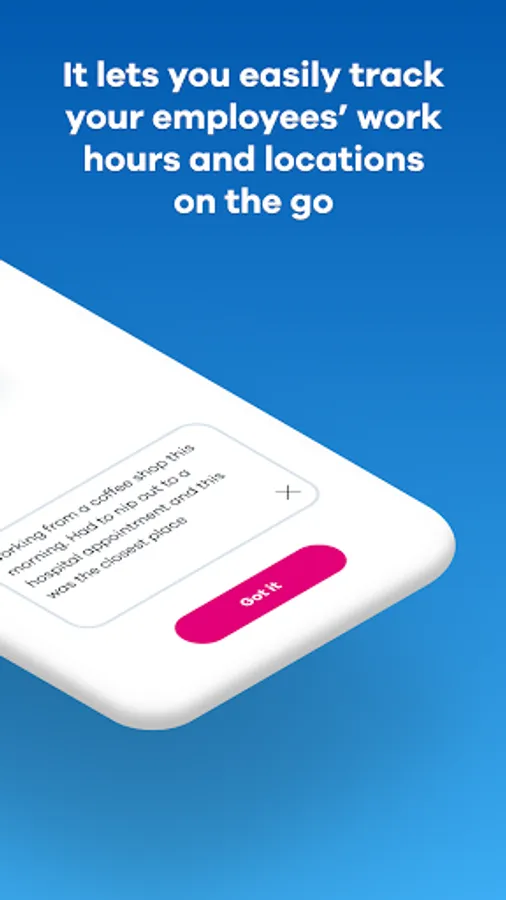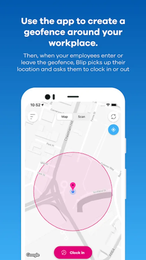 Use the app to create a geofence—a virtual boundary—around your workplace. Then, when your employees enter or leave the geofence, Blip picks up their location and asks them to clock in or out, helping you to know exactly where your staff have worked and how long for.