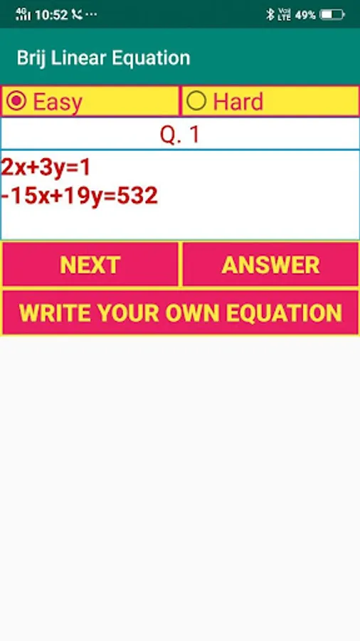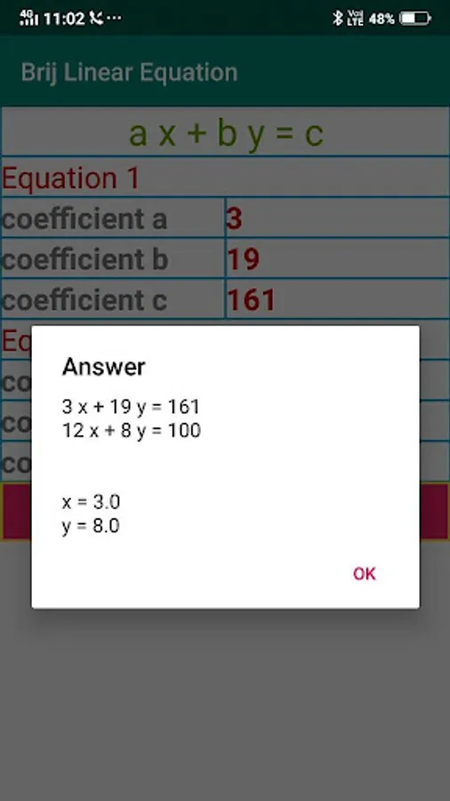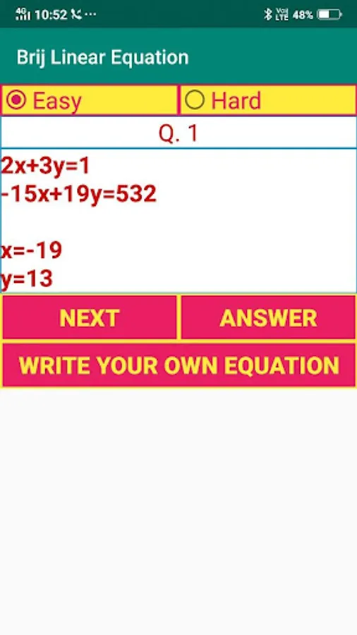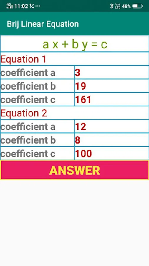 This app solve the value of x and y which are in Linear Equation.