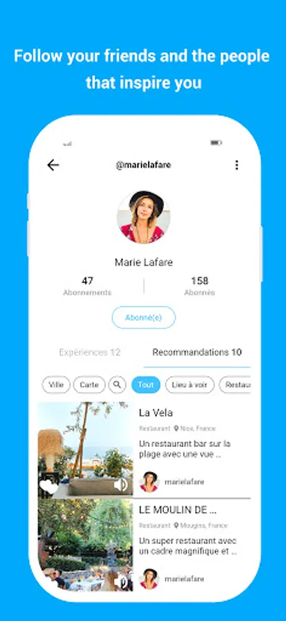 Follow your friends and your favorite accounts to see their news and their tips for your next trip.