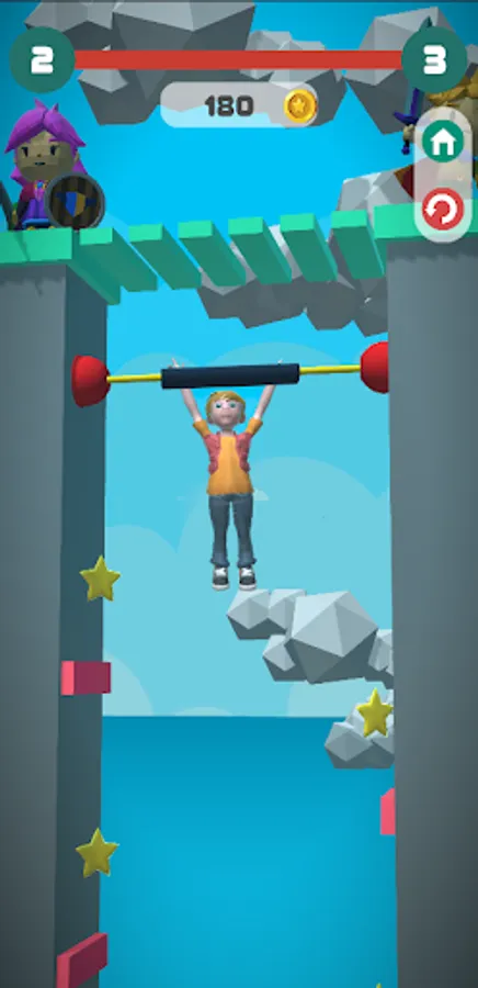 The stick is the only tool they have to maintain their balance, and they must use it strategically to shift their weight and adjust their position to avoid falling. The game requires a combination of focus, quick reflexes, and careful planning to successfully navigate the obstacles and reach the end of the course without falling.vlad and niki help your brain skill to make vlad arrived to the finish level and help niki from guards.