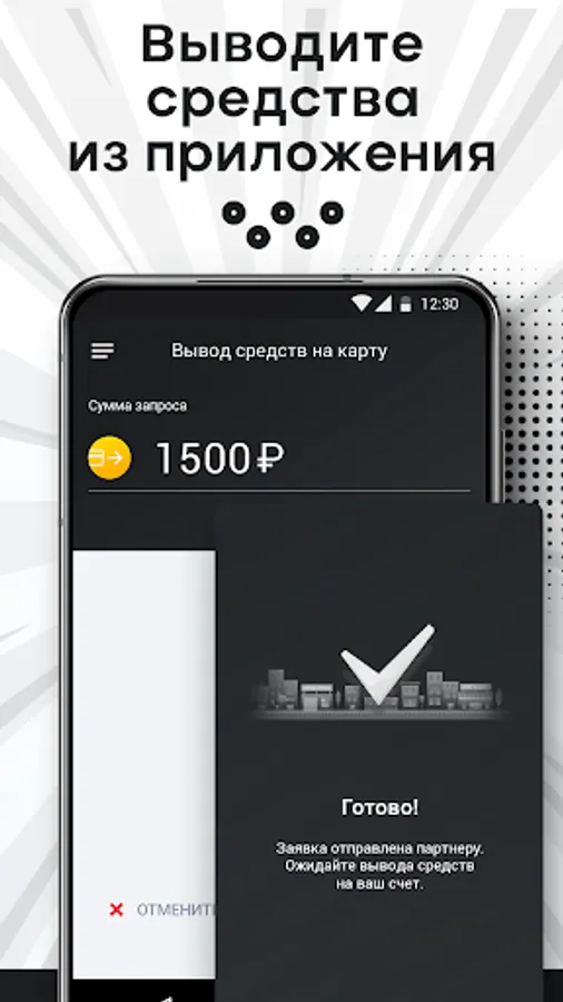 Earned money can be withdrawn at any time of the day. All withdrawal requests are processed automatically and stored in the application.