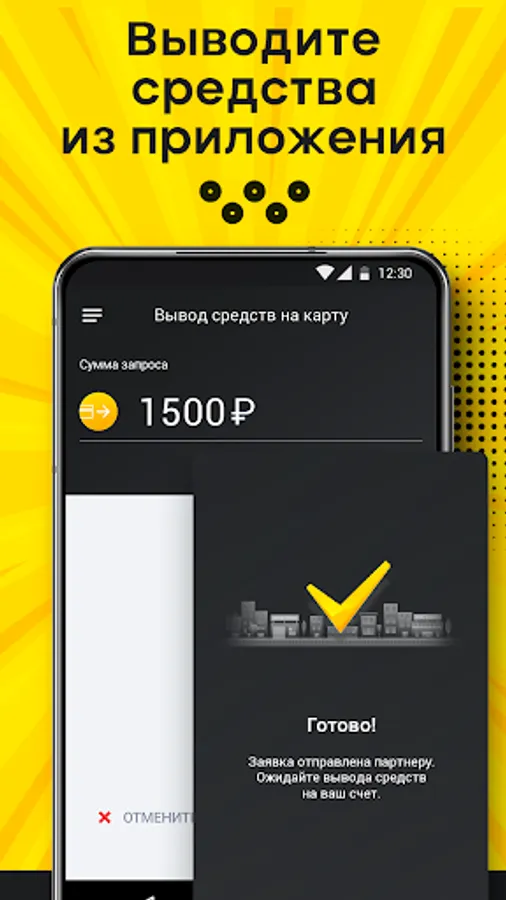 Водители сами управляют заработком, самостоятельно формируют выводы заработанных средств. Для получения денег не нужно приезжать в кассу таксопарка. Запрошенная сумма в течение 1-2 минут поступает на карту любого банка. С нашим приложением работа таксистов и курьеров становится комфортной и приятной. Все возникающие вопросы можно решить дистанционно.