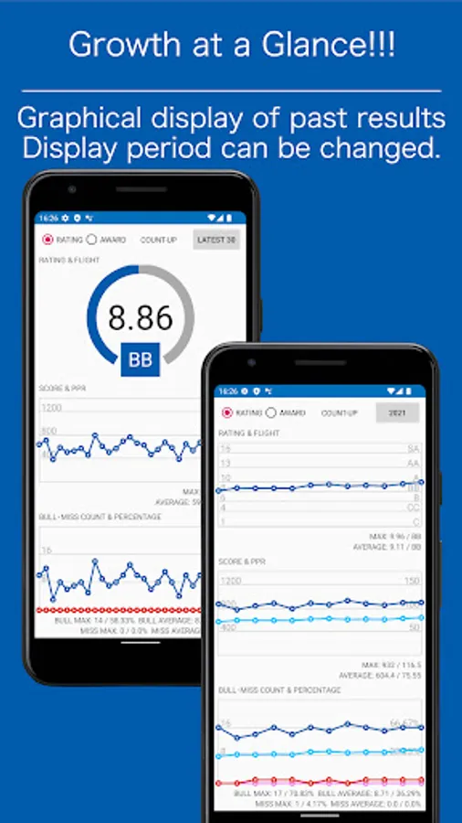 ・Graphical display of count-up scores, PPR, bull rate, and miss rate