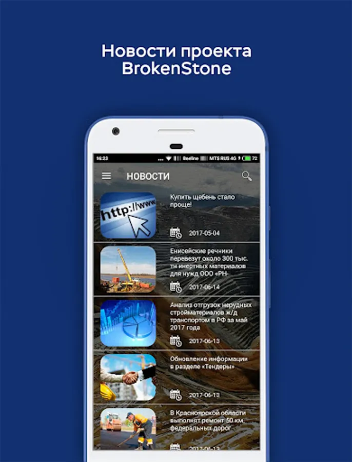 BrokenStone - the only app dedicated to all the participants of the market of non-metallic materials. Current information on the gravel market and its participants. Monitoring daily railway rubble deliveries by rail. Recent tenders for non-metallic materials from all areas of the country.