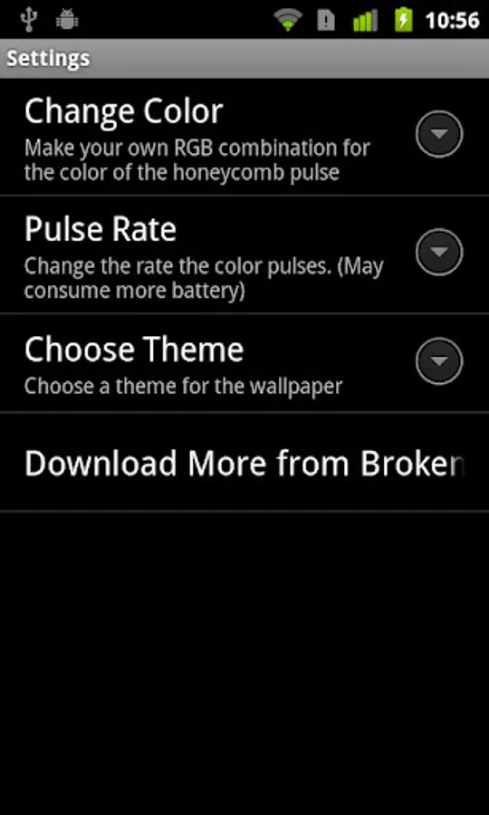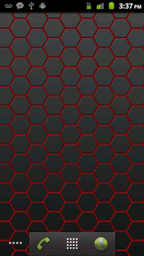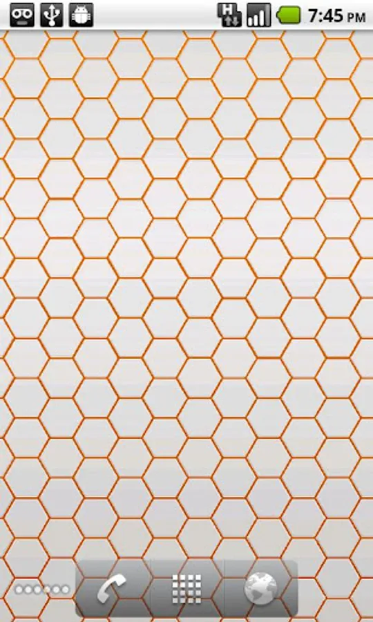 Live wallpaper with a honeycomb style background and pulsing background color. Colors may be changed through the settings.