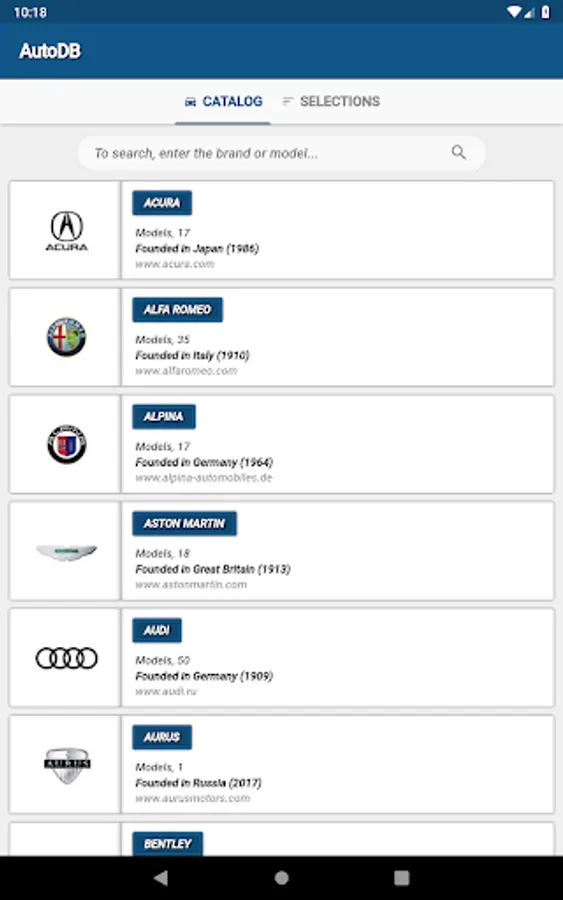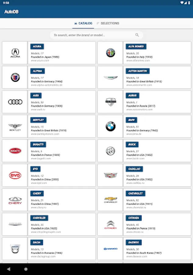 AutoDB searchable car catalog contains popular car brands, car models and vehicle modifications of the following brands: