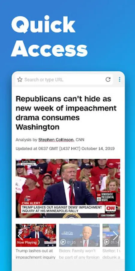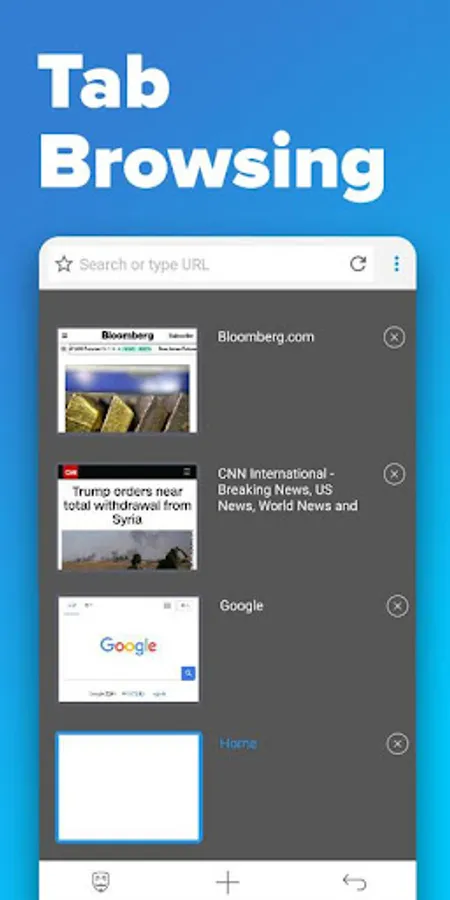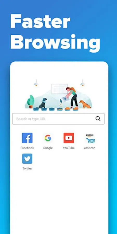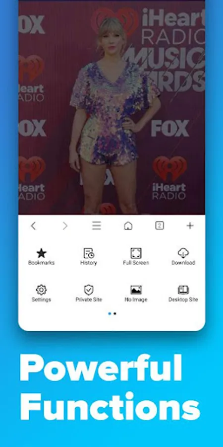 Super fast browsing speed, Tab function, Your favorite websites available in one click, Constant and modern updates, Full privacy