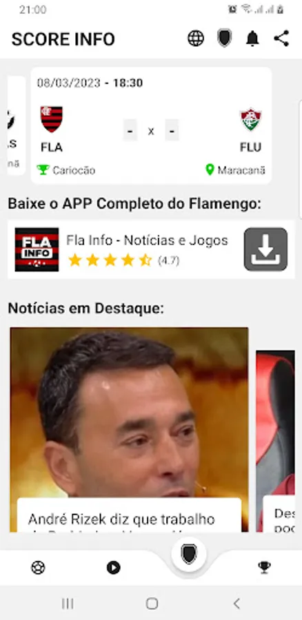 Score Info is a complete application for football lovers who want to follow all the information about their favorite teams in real time. With an intuitive and easy-to-use interface, users can access a variety of resources to stay up-to-date on the latest news, games, videos, squads and standings of the leagues their teams are participating in.