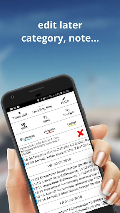 ✔ You can leave the smartphone in your pocket and in the background, all starts are u. stops incl. route and favorite places recorded automatically + automatically track mileage (even offline)