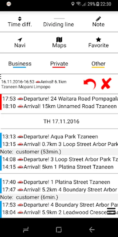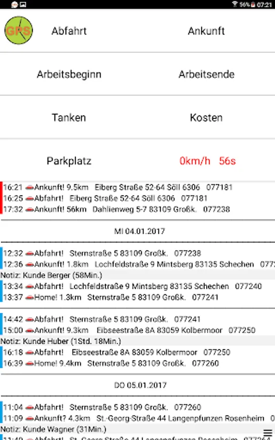 ✔ move off and stop are automatically recognized with gps and logged as departure and arrival