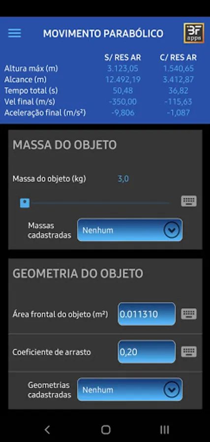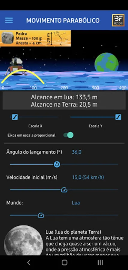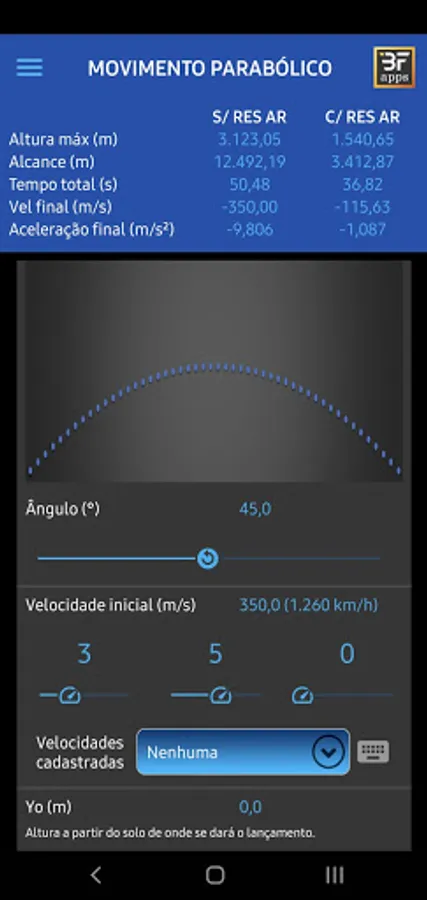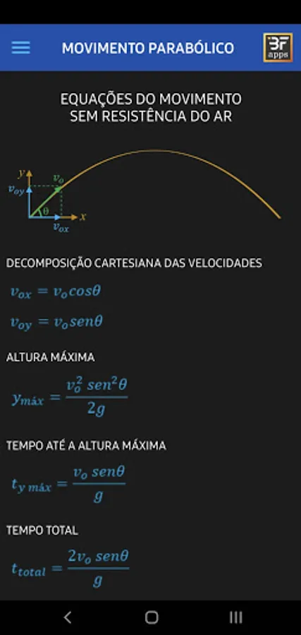 This education application was developed with the aim of helping students and teachers in the study of parabolic launch, disregarding air resistance, for students up to high school, and considering air resistance, for students in higher education courses. engineering and physics.