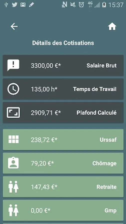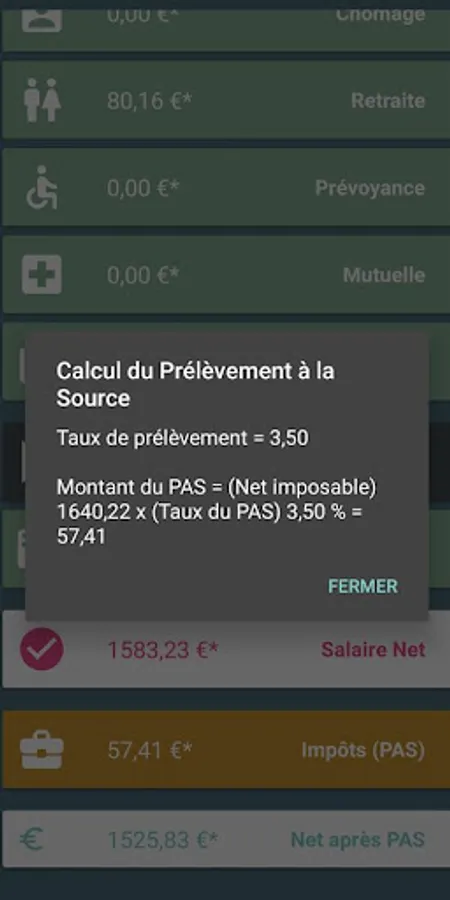 Also discover the details of the calculations for each contribution! (Detail of calculations accessible via the Detail of contributions window, by clicking on the amounts of contributions displayed)