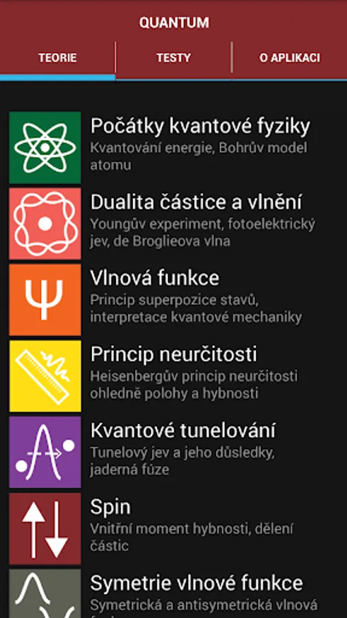• 60 test questions divided into four tests where you can check your knowledge of quantum mechanics