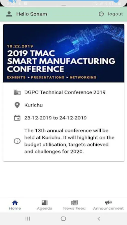 This app is specifically for the attendee of Druk Green Power Corporation Technical Conference. It will address the issues and inconveniences faced in conventional methods of organizing conference which are very tedious and requires lot of paper works and human resources.
