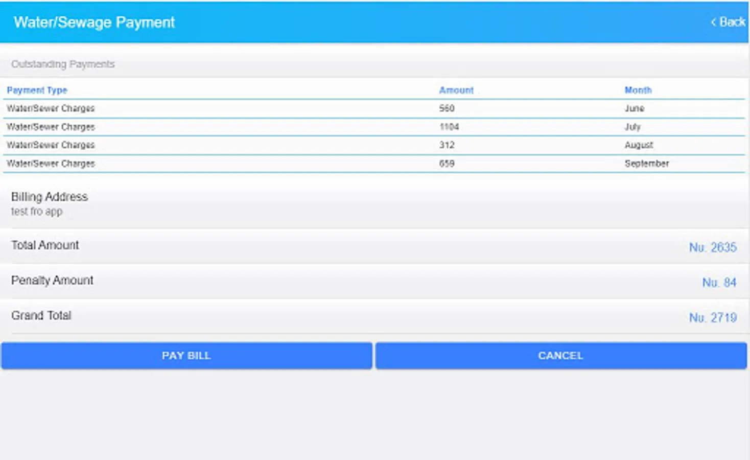This app is to provide additional channels and features to deliver better services by Phuentsholing Thromde and to make payment more convenient and easy for the citizens. With the app, spot water meter reading and billing will be implemented and citizens will be able to pay water bills and property taxes conveniently from anywhere without having to visit the Thromde office.