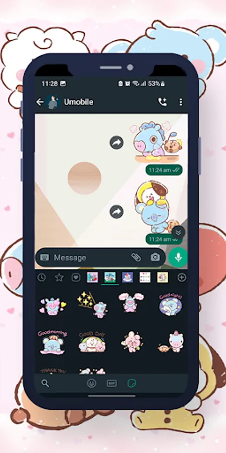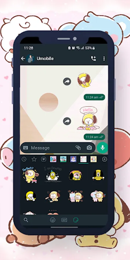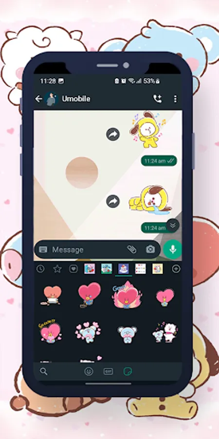6. You will see a new sticker icon at the bottom and can now use this sticker pack and express your love !!