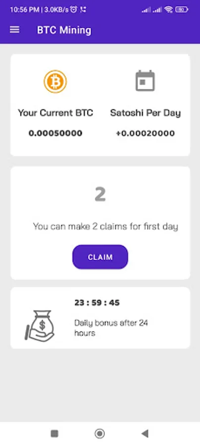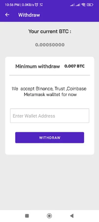 BTC Mining is an affordable and easy way to passively earn money using your mobile device: just install the app and start earning anytime, for free and without investment. You can earn Bitcoin (BTC) very easily just useing this apps daily basis. This apps can gives you good amount of money for every mounth. You can earn Bitcoin (BTC) for only doing some simple task. You can mining (BTC) everyday. and also you can earn some extra Bitcoin (BTC) for doing some extra task. Those extra task is so easy for everyone. Also this apps is very easy to use. Everyone can use this apps very easily. This apps do not heat up your phone and it also does not affect any device. You can use this apps useing even a normal android smartphone and earn good amount of Bitcoin (BTC) each mounth. This apps is highly safe for mining. So get ready to earn some Bitcoin (BTC) useing your smart phone.