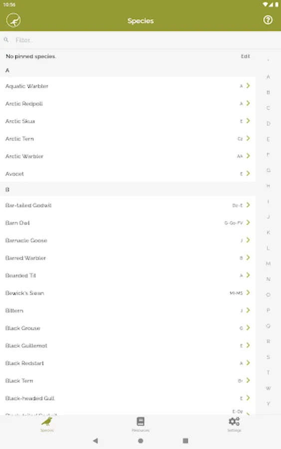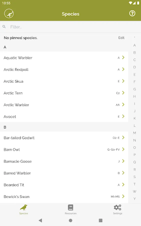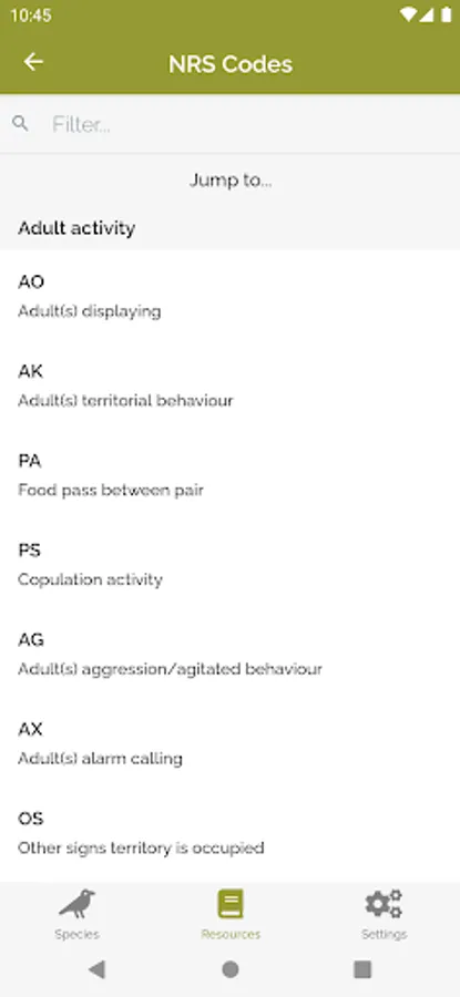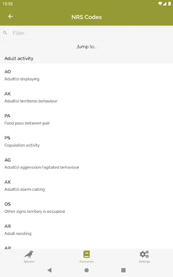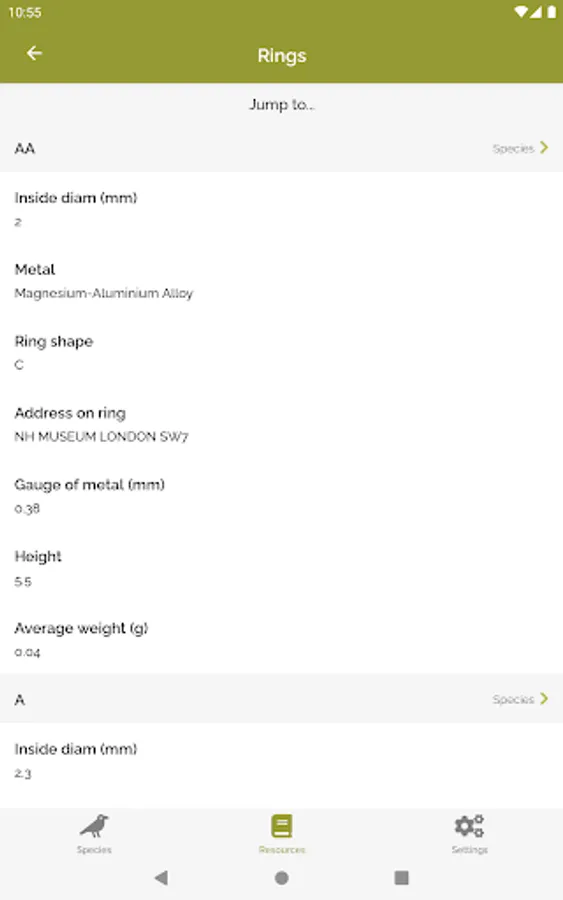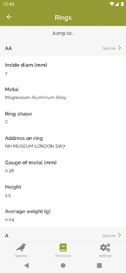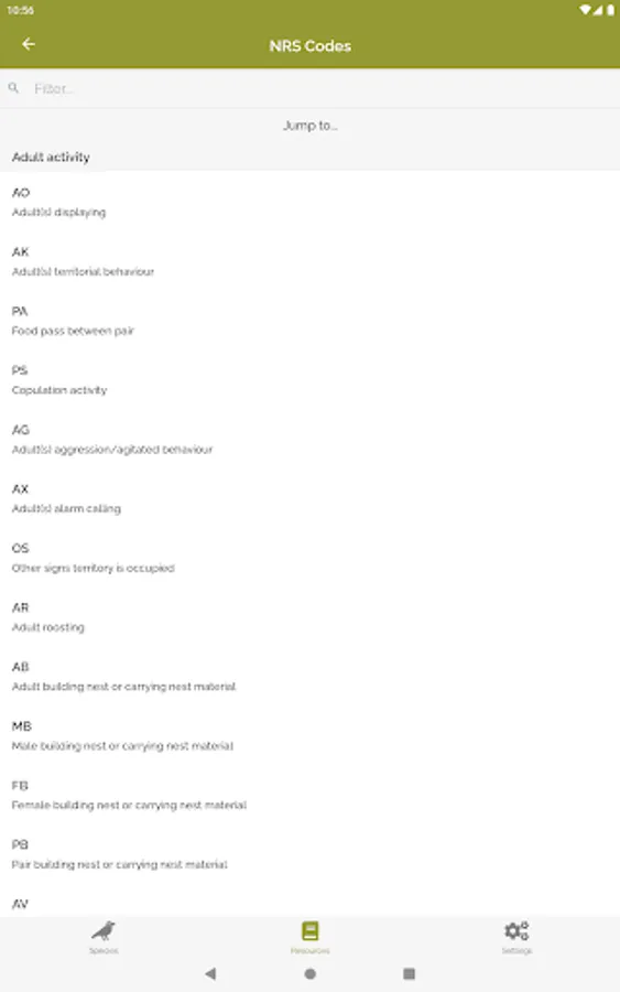 An app to help bird ringers, nest recorders and scientists check the correct ring sizes/codes to use for each bird species ringed in the UK (for both full-grown birds and pulli) and the codes needed to record nests and their contents. The app also includes the codes needed to record biometrics, condition and status information for each bird as well as the standard habitat codes.