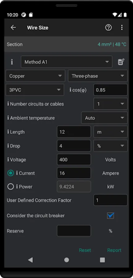 Wire Size Calculator(NEC,IEC,CEC,PUE)