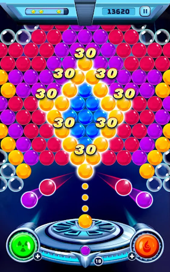 Join the incredible adventure in space and enjoy cool graphics, effects, and addictive gameplay. You can swap bubbles for free- just tap on your bubble to change its color. See which color you are getting next and work out a strategy to smash all bubbles using fewer shots.