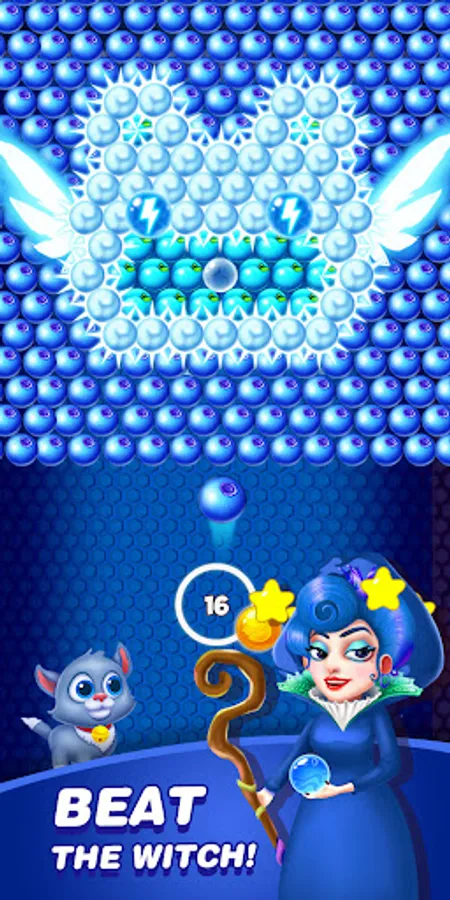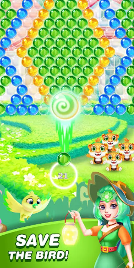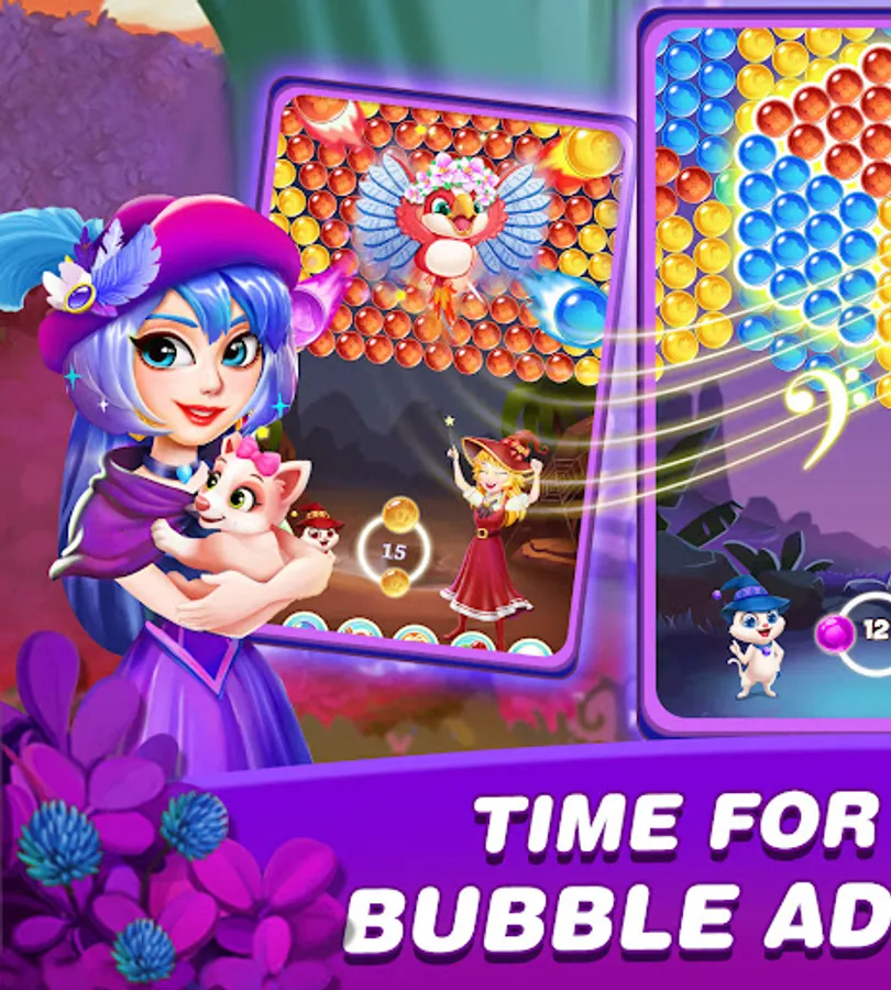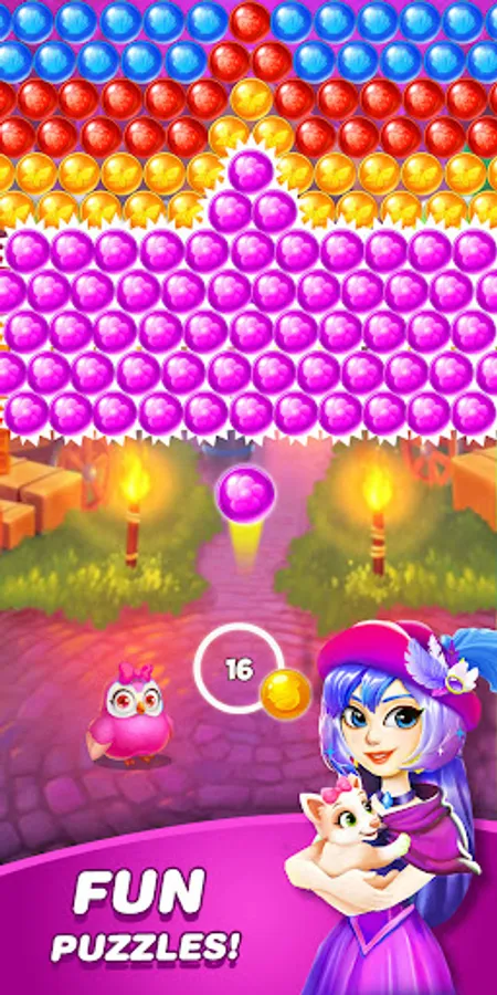 • Color-match for 3 bubbles to pop them in this magical puzzle shooting adventure